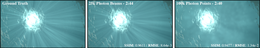 Our second contribution is a more efficient rendering method for participating media based on photon beams. Even when shooting and storing less photons and using less computation time, our method significantly reduces both bias (blur) and variance in volumetric radiance estimation. This enables us to render sharp lighting details (e.g. volume caustics) using just tens of thousands of photon beams, instead of the millions to billions of photon points required with previous methods.