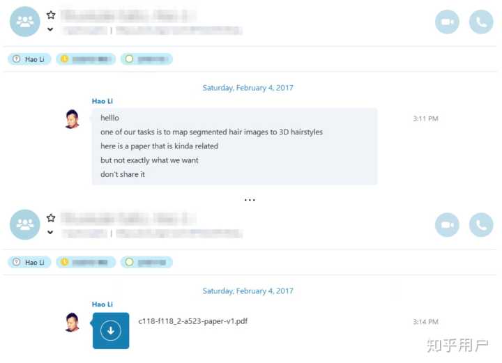 Hao是这篇文章的审稿人之一,在审稿期间(SIGGRAPH 2017是1月18日截稿,3月6日出审稿结果,这个截图里是2月4日)把文章分享给外人,这是很严重的违规。