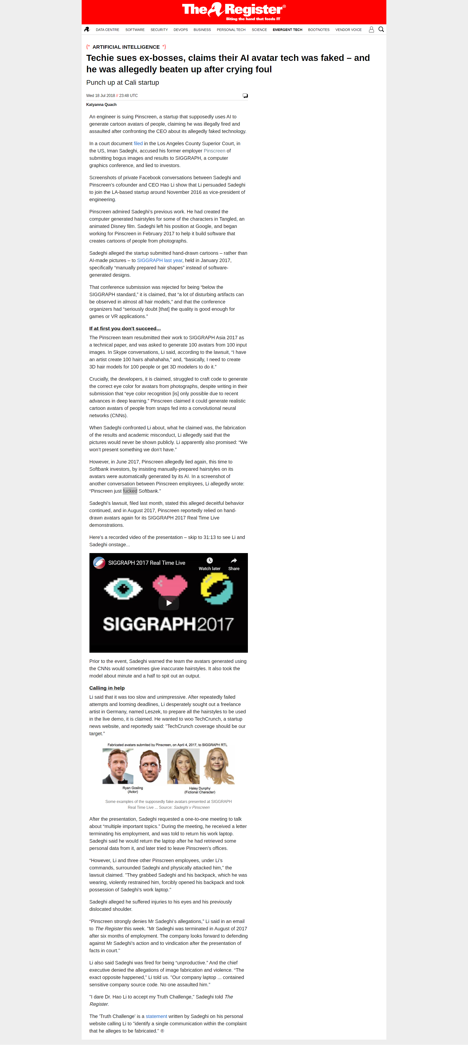 | "I dare Dr. Hao Li to accept my Truth Challenge," Sadeghi told The Register. |