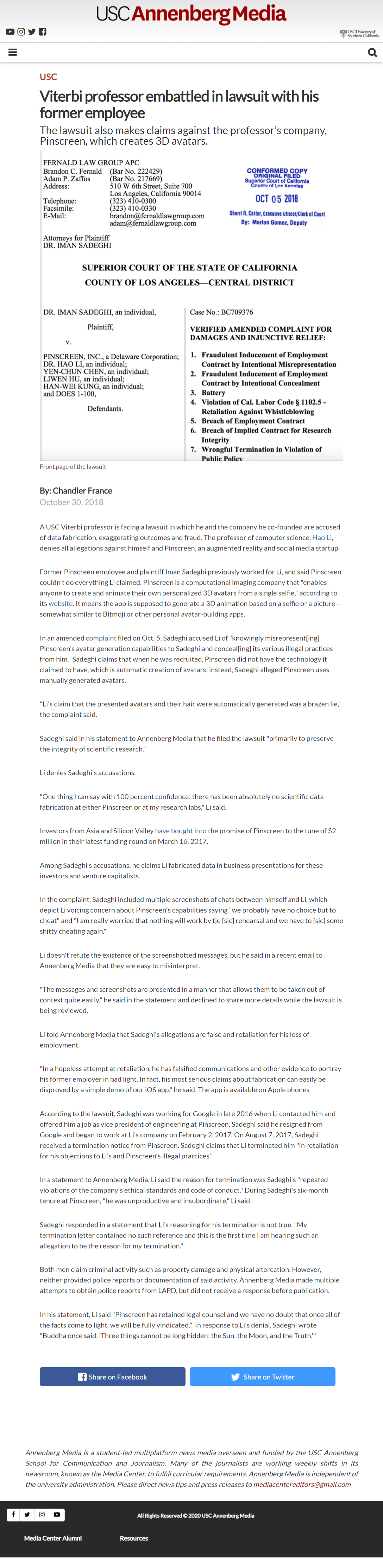 USC v. Dr. Hao Li Truth Challenge